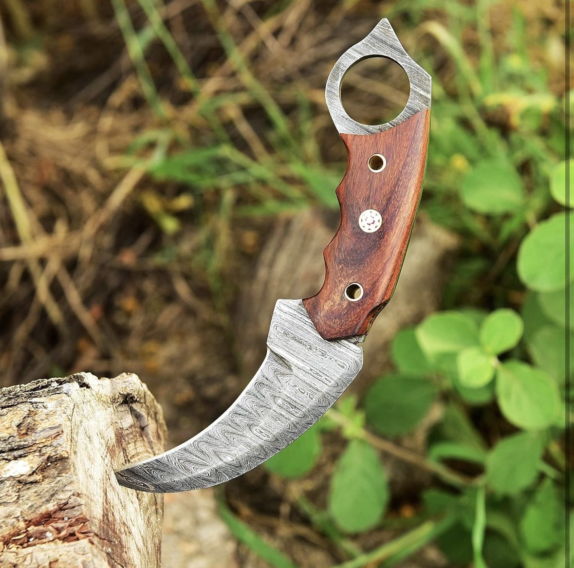 🌀 BCK 7.5″ Handmade Damascus Steel Ultra-Sharp Karambit Knife With Leather Sheath – Rose Wood 🔪 – a masterpiece of precision, strength, and style! Crafted from high-quality Damascus steel, this custom-made knife ensures razor-sharp cutting power for hunting, survival, and outdoor adventures 🏕️. The ergonomic Karambit design provides a secure grip, while the rosewood handle adds a touch of elegance. Complete with a leather sheath for protection, this hunting knife, survival knife, and outdoor tool is a must-have for collectors and enthusiasts. Upgrade your gear today! ⚡🔥